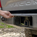 The Cat 5 Package doesn't stop at the front; it includes a Southern Style Offroad Rear Bumper that mirrors the strength of the front. Constructed from 3/16" thick all-American steel, this rear bumper features a hidden hitch that improves your Tacoma's departure angle by 6 inches, providing enhanced off-road capability. It’s designed to handle heavy loads with OEM spec towing capabilities, making it a reliable choice for any adventure. The sleek black powder coat finish and flip-up license plate bracket keep your truck looking sharp while protecting it from the elements.