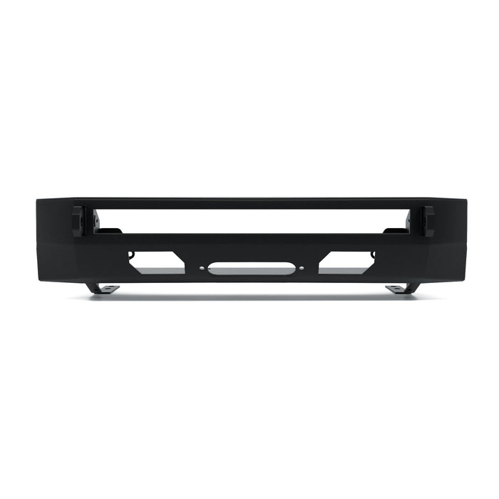 Lightweight and stout, the 2014-21 Toyota Tundra front bumper is the perfect fit for the weekend offroader or even the overlander looking to escape civilization. Constructed of 3/16″ steel, the winch mount plate can accept most 10,000-12,000 lb winches on the market today. Separate solenoid mounting may be required.  Customize your bumper with a 30" lightbar cutout and a choice of a TSS Compatible Bullbar.